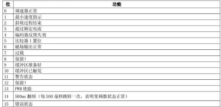 AC800變頻器狀態(tài)標(biāo)志位指示在狀態(tài)標(biāo)志位變量和狀態(tài)標(biāo)志位變量2中。